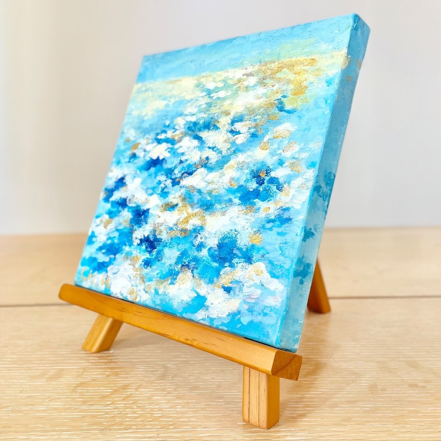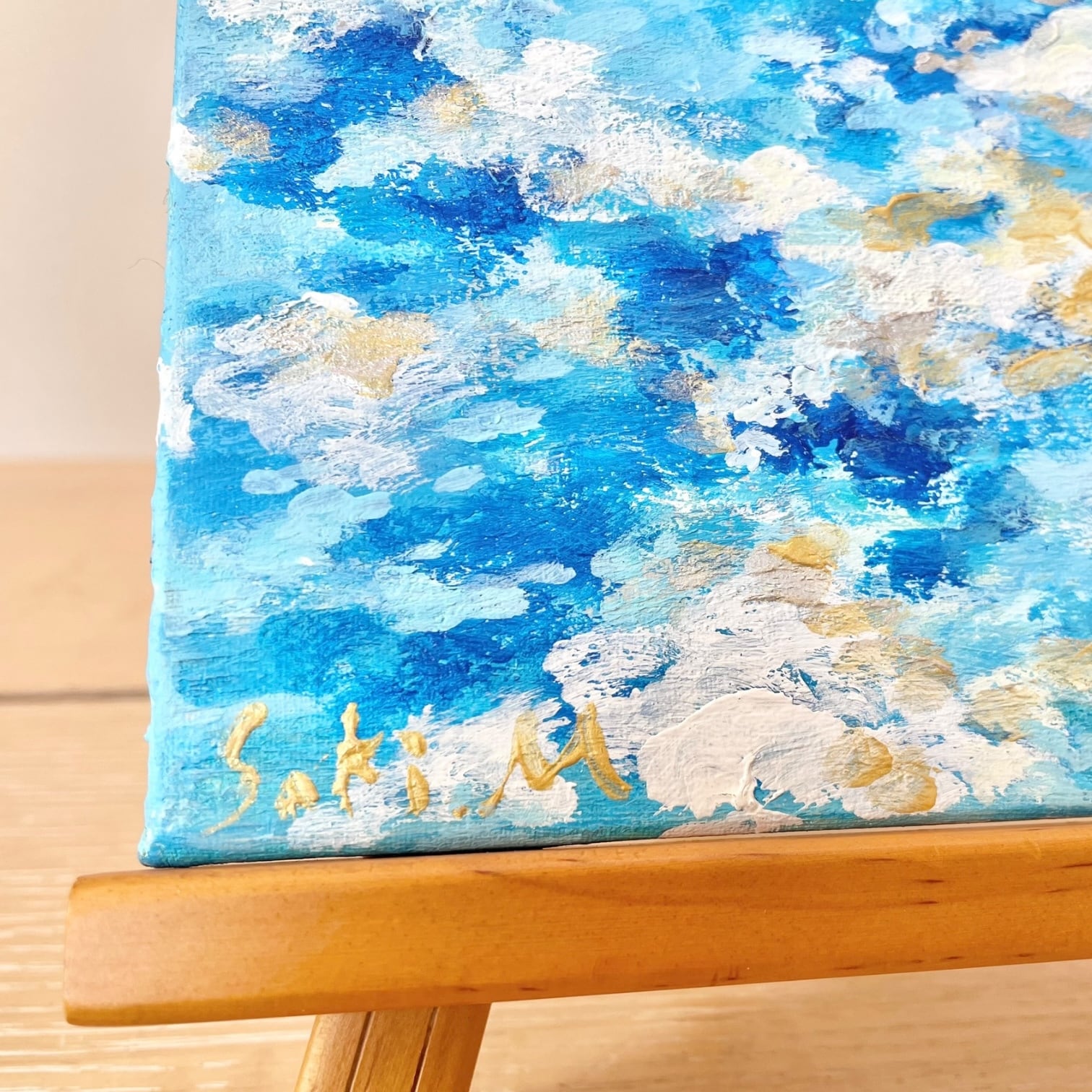 光を受けてきらめく青い波と、やさしく舞う雲のような白が、